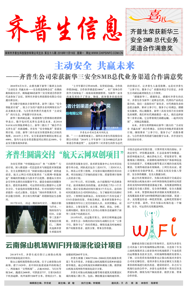 主動(dòng)安全 共贏未來(lái) ——齊普生公司榮獲新華三安全SMB總代業(yè)務(wù)渠道合作滿意獎(jiǎng)