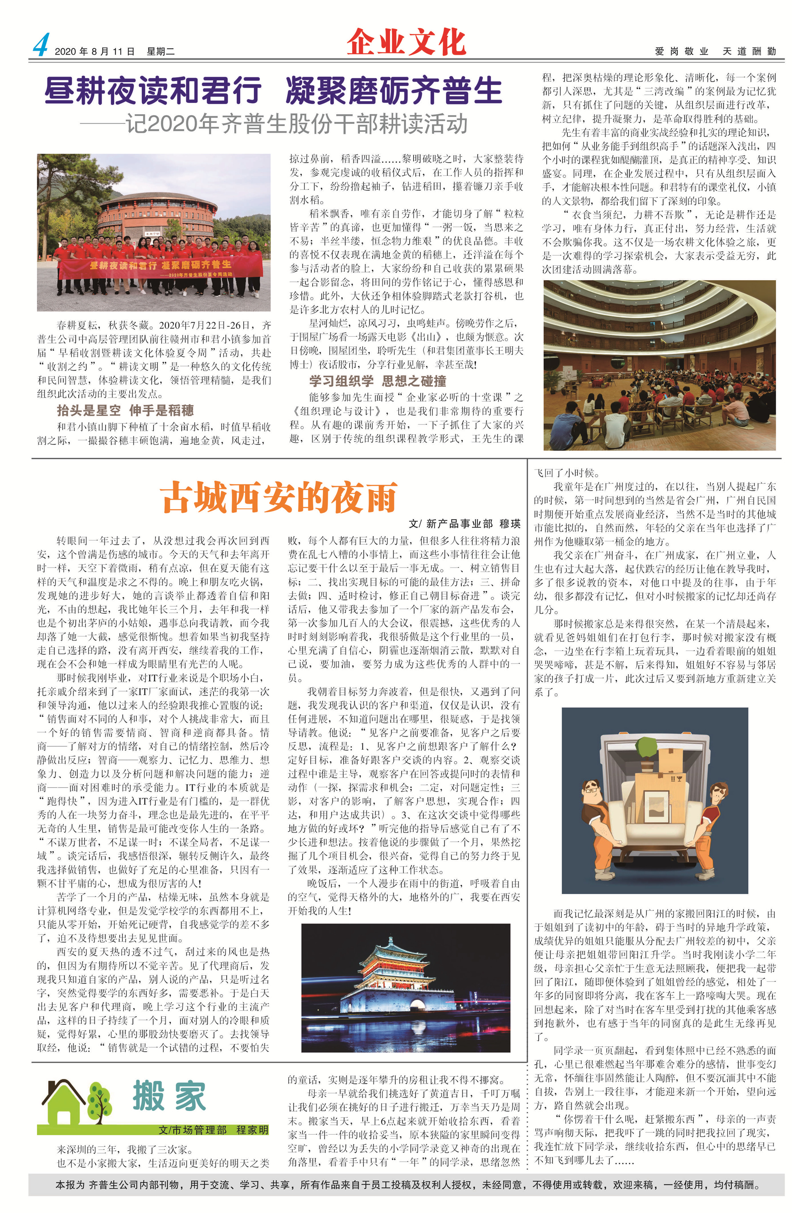 晝耕夜讀和君行 凝聚磨礪齊普生 ——記2020年齊普生股份干部耕讀活動
